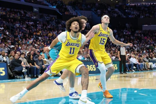 湖人上一场102-122惨负老鹰结束5连胜,黄蜂过去两场连续客场输给鹈鹕与热火遭遇2连败。本场湖人缺少詹姆斯与文森特、蒂耶罗,黄蜂缺少三球、米勒与格威等。首节开局湖人2-6,湖人连得4分追平,双方之后持续对攻缠斗至湖人15-16落后。湖人连得4分反超,双方继续缠斗至29-29,黄蜂连得5分,湖人连得4分追到差1分。塞克斯顿与布里奇斯各中一记三分,克内克特三分命中,首节结束湖人36-40落后黄蜂。东契奇8中5得到13分4助攻,布里奇斯6中6狂轰16分,其中外线三分4中4。