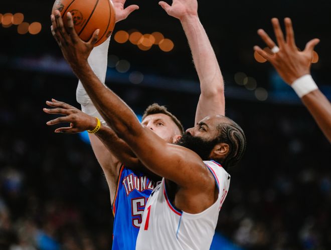 不过雷霆进攻也找到手感,哈登抛投,华莱士和霍姆格伦内突外投,双方陷入拉锯战。后半段伊塞亚乔和哈登外线对狙,琼斯续上三分球,祖巴茨暴扣。半场快船57-56雷霆。下半场回来,哈登助攻祖巴茨勾手,又造多特三分犯规,亚历山大带队追平后,哈登继续喂饼邓恩,琼斯也续上三分球。哈登在场,快船和雷霆攻防打成均势,甚至哈登在场还能赢分。但换上保罗后,快船崩了。节末伊塞亚乔内外开花,大洛连中两记三分球止血。但亚历山大和伊塞亚乔继续发力,三节打完,雷霆94-86快船。