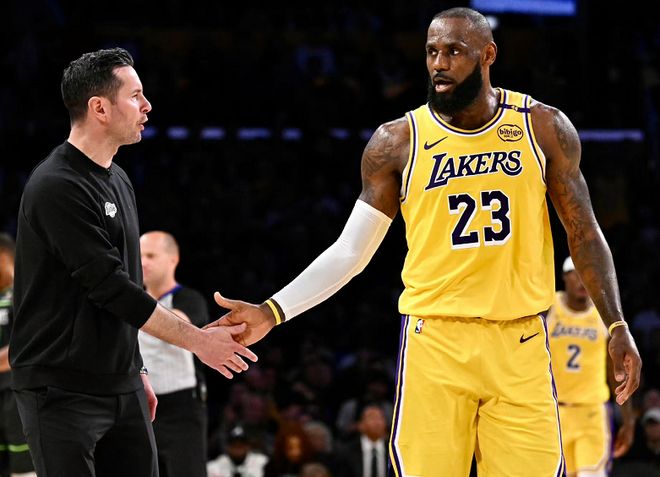 火箭队的5连胜虽迟但到实至名归,湖人队的5连胜却出人意料步步惊心。新赛季,老詹因坐骨神经痛始终高挂免战牌,东契奇缺阵4场,里夫斯缺阵2场,艾顿缺阵1场,斯玛特缺阵2场,海斯缺阵3场,文森特缺阵6场。9场比赛打完,湖人使用了7套不同的首发阵容,却取得了7胜2负的佳绩,力压火箭(5胜2负)高居西部第2位,仅落后西部第1的卫冕冠军雷霆(8胜1负)1个胜场。值得一提的是,赛季至今,湖人4次在比赛中落后10分以上,实时胜率仅为0.01%,但他们最终都完成了大逆转,太燃了!