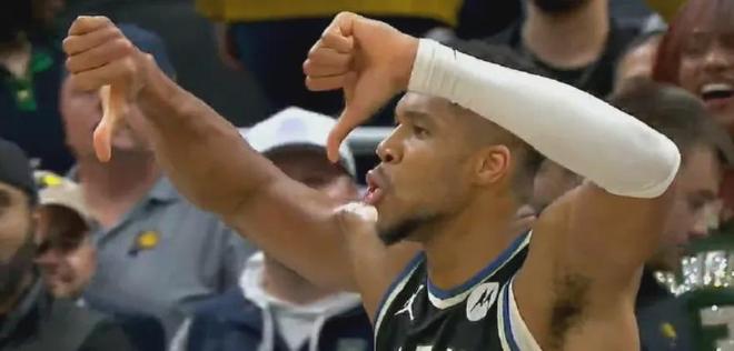 完成绝杀之后的字母哥还冲着现场的步行者球迷倒竖大拇指,为特纳出头。