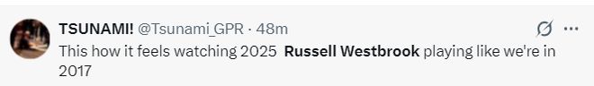 美球迷:我感觉自己在2025年看到了2017年的威少打球。(MVP赛季)
