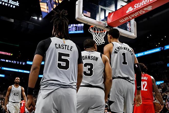 本场比赛中,马刺的先发控卫斯蒂芬-卡斯尔(Stephon Castle)的整体表现还是值得肯定的。卡斯尔全场出场36分22秒,投篮12中5,三分线外4中0,罚球5中4,得到了14分6篮板13助攻2抢断1盖帽的两双数据,还有5次失误和3次犯规,正负值更是达到了全场最高的+25。卡斯尔在进攻端有着相当不错的冲击力,他也是能够给对手内线制造一定的威胁的,他也展现出了相当不错的传球能力和组织能力。除此之外,卡斯尔在防守端的作用也是有目共睹的,他的个人防守能力也是有了充分地体现。当然了,如果卡斯尔能够控制自己的失误数并且提升自己的外线投篮稳定性,他的表现还能够有进一步的提升。不过有一点也是肯定的,卡斯尔在场上时球队的局面一片大好,他也是球队能够取得这场胜利的重要因素。