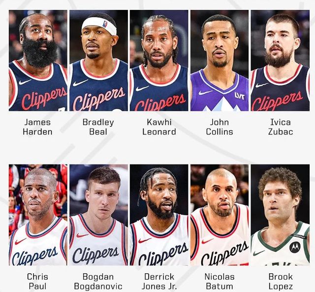 摊开阵容名单,伦纳德、哈登、比尔、保罗、科林斯、大洛、祖巴茨、巴图姆、波格丹,这套班底摆在纸面上确实足够吓人,但从现实来看,篮球从来都不是单纯的堆球星的简单游戏。