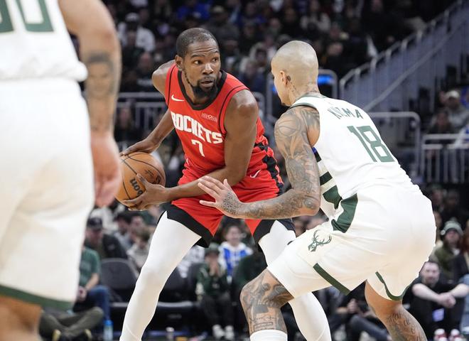 杜兰特或者申京错位打特纳,或者两人在进攻端硬解,打到雄鹿不得不包夹为此,为此两人都贡献了7次助攻,构成了火箭进攻的逻辑起点。