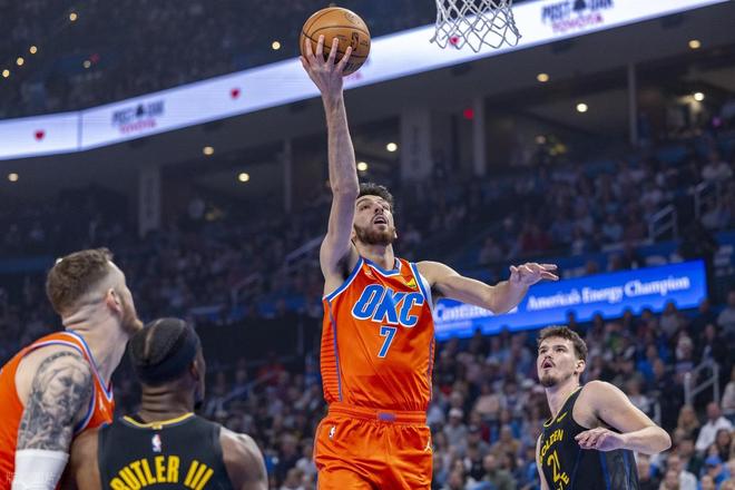 第三节切特内外开花,和亚历山大一起打花勇士。全场比赛,他出战25分钟,投篮9中9,三分2中2,罚球3中3,100%命中率砍下23分11篮板2助攻1盖帽。
