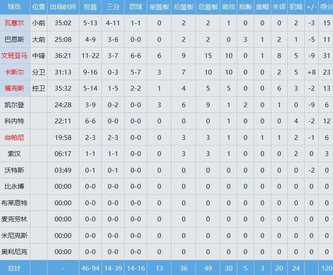还得是库昊,投篮25中13(三分16中5),罚球16中15爆砍46分外加5板5助2断,带领勇士125-120击败马刺,全队暂时获得喘息空间。