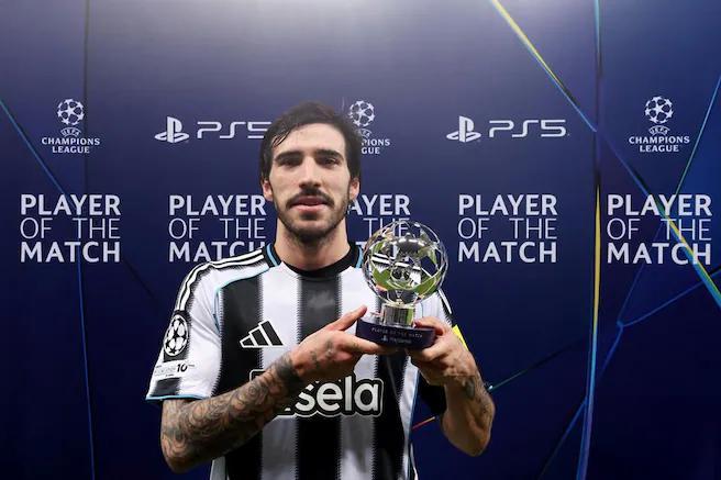 表现出色,托纳利当选欧冠纽卡vs毕尔巴鄂全场最佳球员