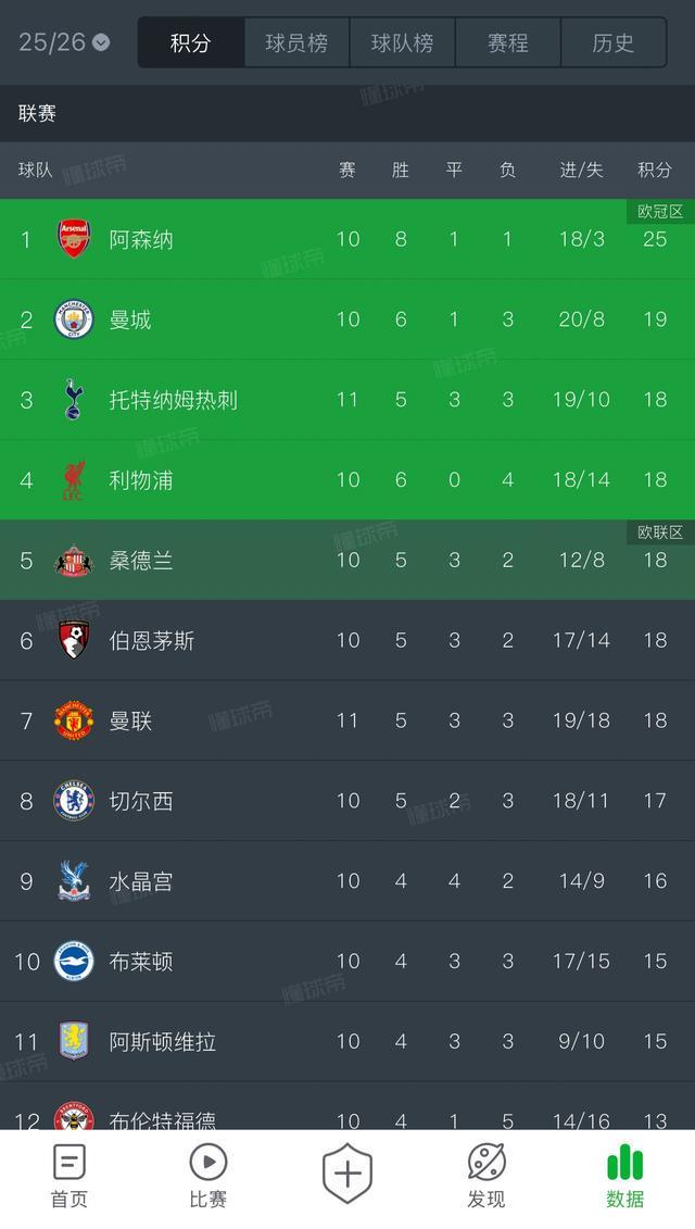 第三热刺和第七曼联同分,英超积分榜目前有5队同积18分