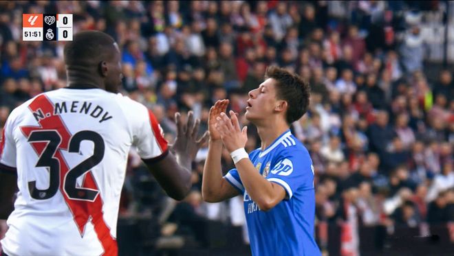 虽然实力相差悬殊,但是开场之后巴列卡诺的节奏和攻势都不弱,与强大的皇家马德里形成对攻的局面。贝林厄姆、姆巴佩利用出色的个人能力,面对巴列卡诺局部围抢,效果非常显著。